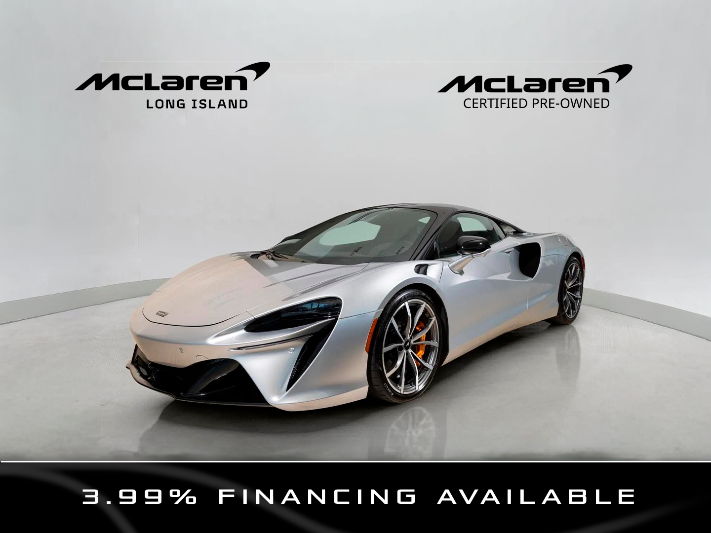 Formula 1-derived technology meets incredible style and remarkable comfort in our McLaren Qualified 2023 McLaren Artura Coupe in Supernova Silver. Motivated by a Twin TurboCharged 3.0 Liter V6 and an Electric Motor offering a combined 671hp coupled to an 8 Speed SSG Dual-Clutch Automatic transmission to propel you to 124mph in just 8.3 seconds or take you nearly 11 miles on solely electric power. You'll look for any excuse to enjoy a drive in this mid-engine, Rear Wheel Drive plug-in Hybrid SuperCar with its ability to attain up to 21mpg on the highway and impeccable ride/handling characteristics. McLaren further sets our Artura apart from the competition with LED lighting, dihedral doors, carbon-ceramic brakes, and eye-catching alloy wheels.Lightweight Alcantara lines nearly every surface inside our Artura, creating a sporty ambiance you simply must experience. Sports seats help keep you supported in fast corners and comfortable on long journeys. In addition, McLaren rewards you with amenities such as keyless entry/ignition, an electro-chromatic rear-view mirror, and dual-zone automatic climate control. You'll also enjoy staying connected and entertained with an easy-to-use full-color touchscreen infotainment system offering navigation, Bluetooth, Android Auto, Apple CarPlay, and powerful audio.Safety is one of McLaren's top priorities. A carbon fiber safety cage surrounds you for optimal security, as a backup camera, rain-sensing wipers, and track-tuned stability/traction control add additional peace of mind. You deserve to reward yourself with our world-class Artura! Save this Page and Call for Availability. We Know You Will Enjoy Your Long Island Sports Cars Test Drive Towards Ownership!